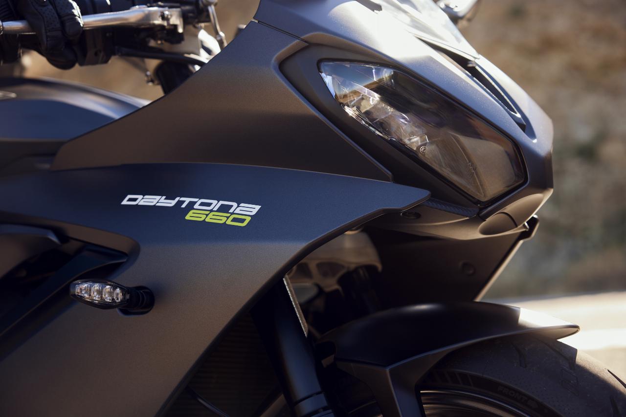 Die Daytona 660 verfügt unter anderem über drei Fahrmodi und ein Notbrems-Warnlicht sowie eine abschaltbare Traktionskontrolle. Die Standardsitzhöhe beträgt 810 Millimeter. Erhältlich ist auch ein Umrüstkit für A2-Führerscheinbesitzer.