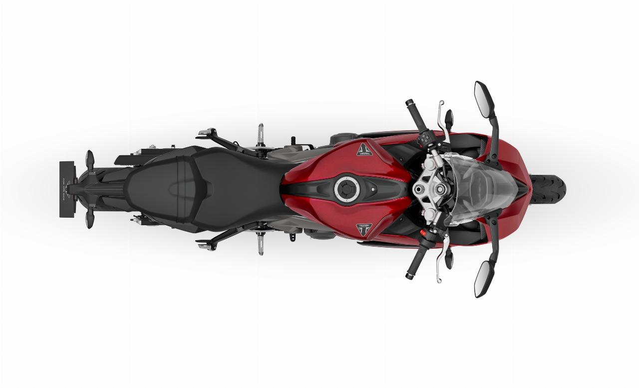 Der in vielen Bereichen umfangreich überarbeitete Dreizylinder mit neuer Auspuffanlage liefert 95 PS statt 80 PS und entwickelt mit 69 Newtonmetern neun Prozent mehr Drehmoment als Trident und Tiger Sport. Die Höchstleistung wird bei 11.250 Umdrehungen in der Minute erreicht, der rote Bereich beginnt bei 12.600 Touren. Bereits ab etwas über 3100 Umdrehungen liegen über 80 Prozent des maximalen Drehmoments an.