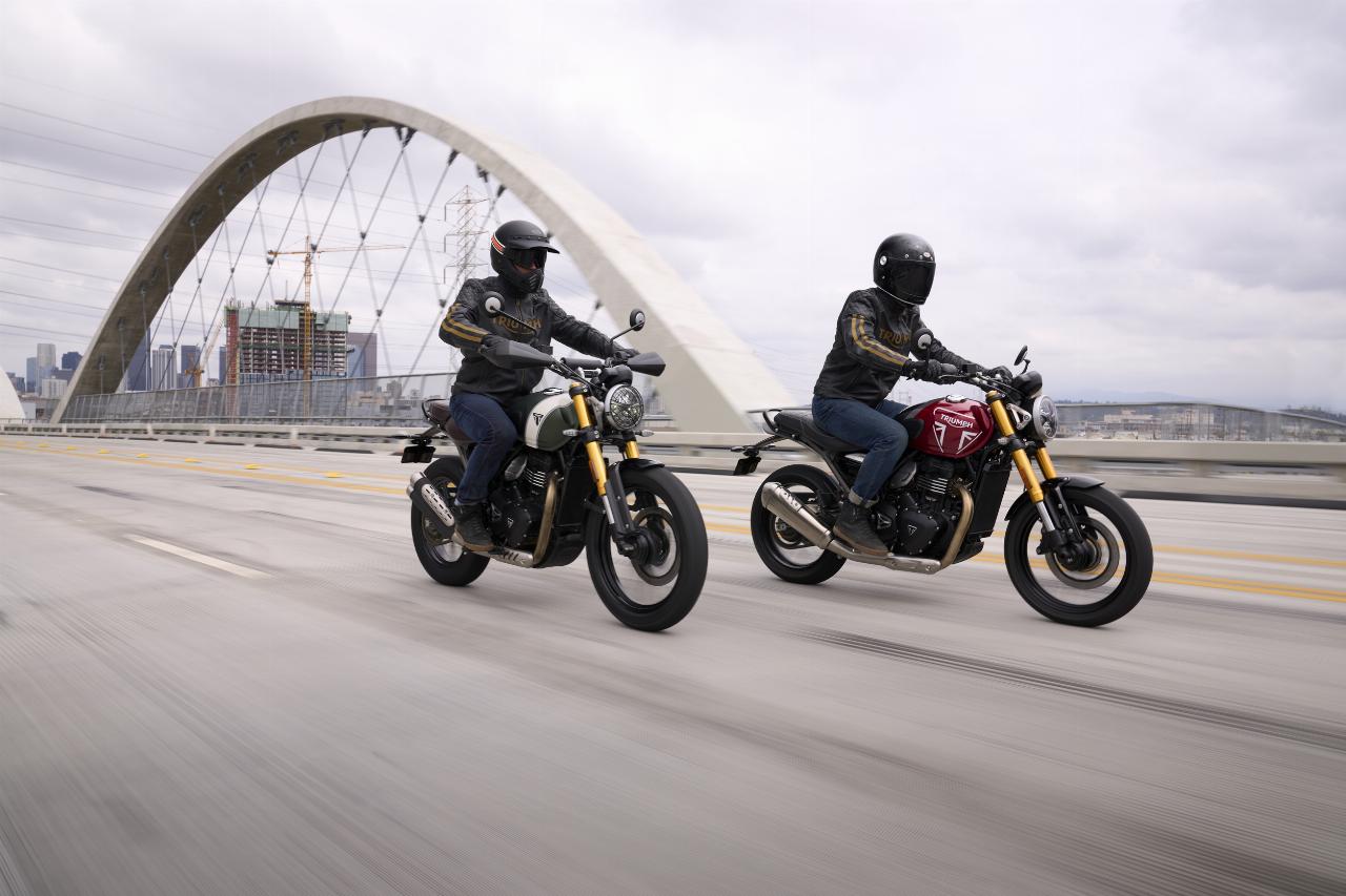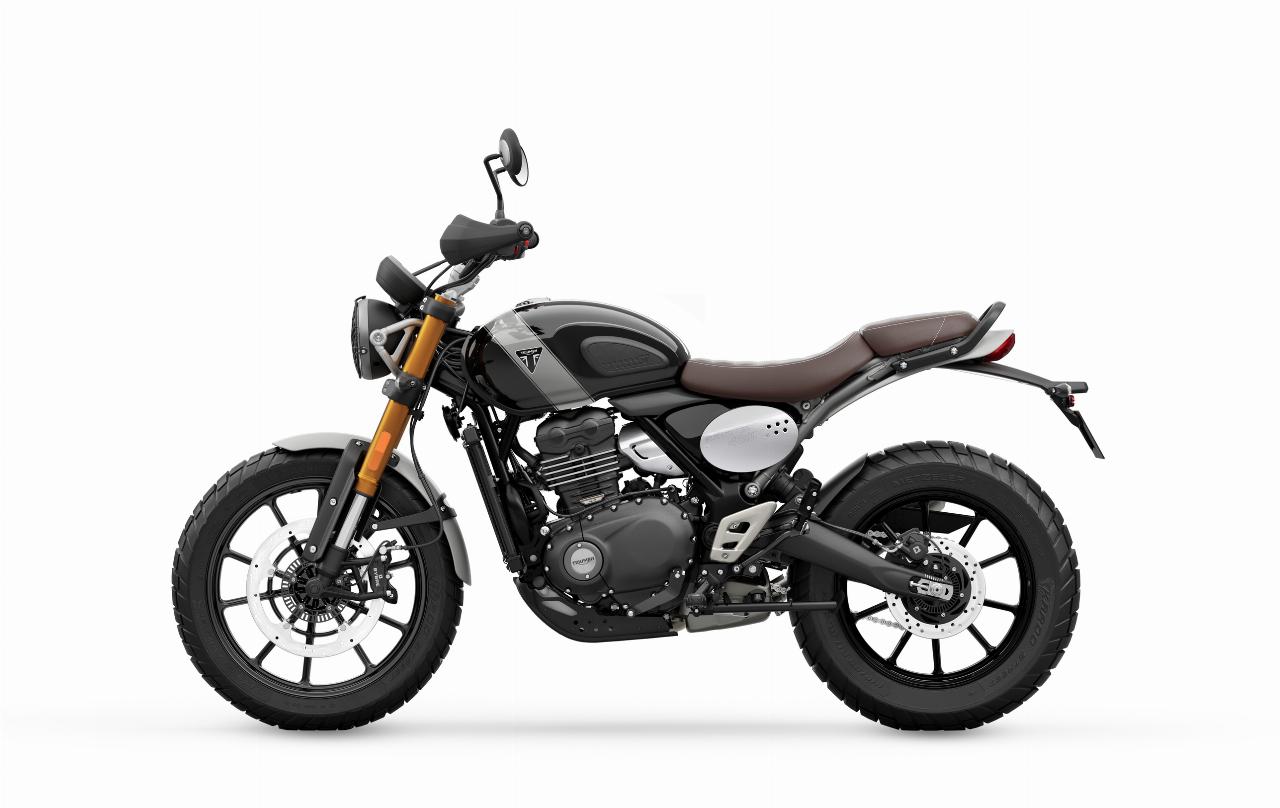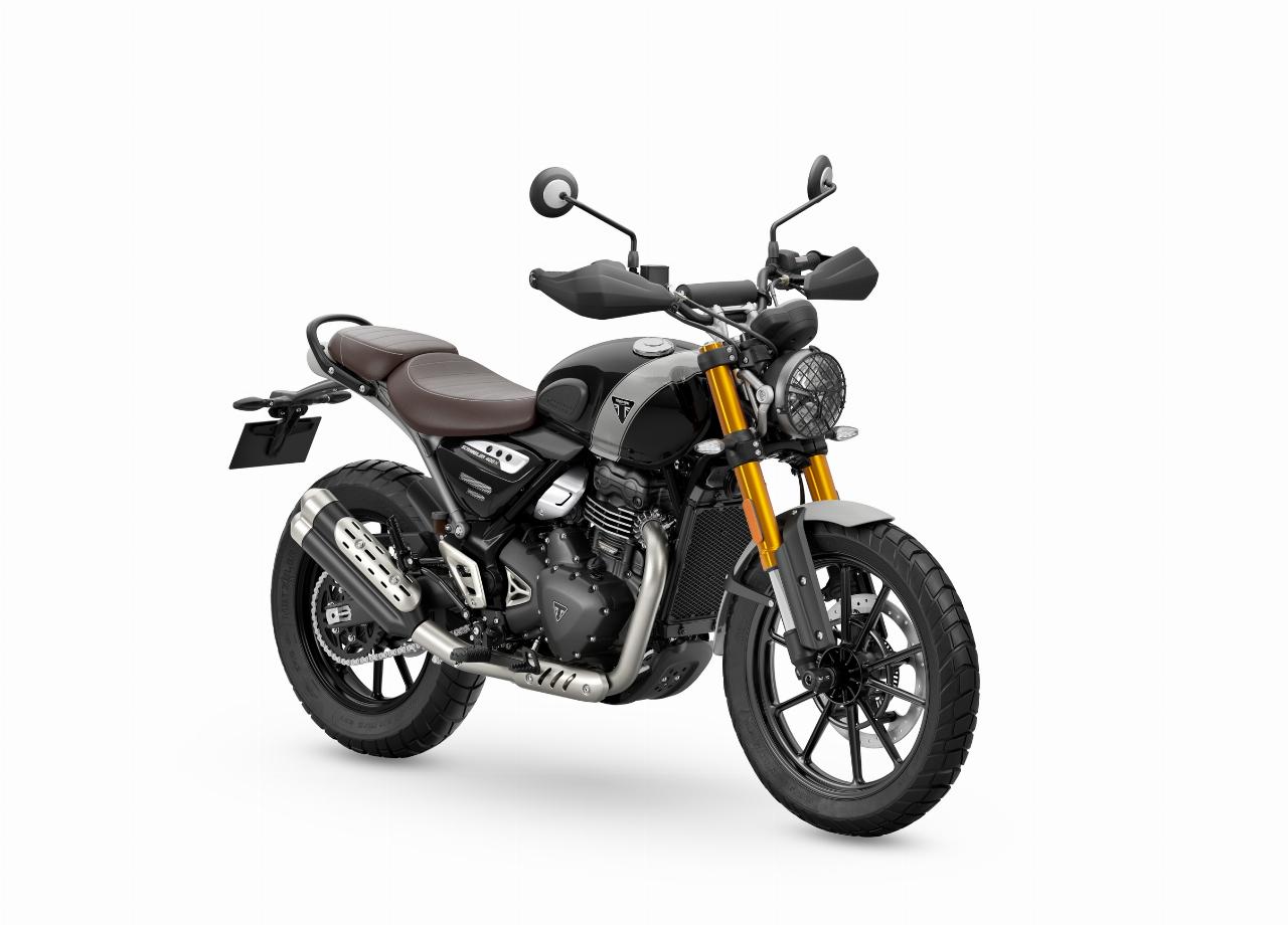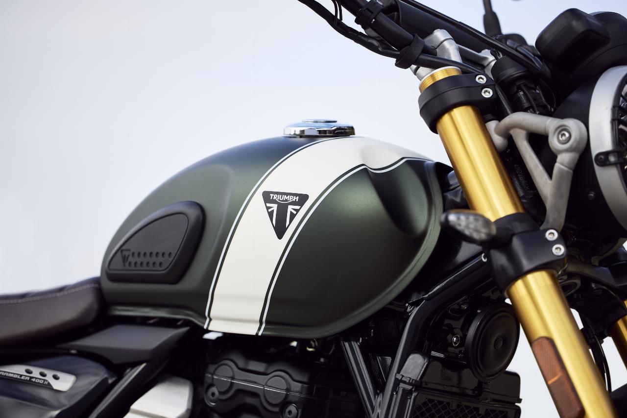Die Triumph Speed 400 und Scrambler 400 X haben eine 43-Millimeter-Upside-down-Gabel, Voll-LED-Beleuchung inklusive Tagfahrlicht, eine USB-Ladebuchse und eine abschaltbare Traktionskontrolle. Der Tacho arbeitet analog, der Rest der Informationen wird per LCD-Display angezeigt. Bei der Scrambler, die nicht nur über eine höhere Sitzposition und ein größeres 19-Zoll-Vorderrad, sondern auch über einen längeren Radstand verfügt, kann das ABS für Geländefahrten deaktiviert werden. Sie zeichnet sich außerdem durch ein Doppelendrohr und grobstolligere Bereifung aus.