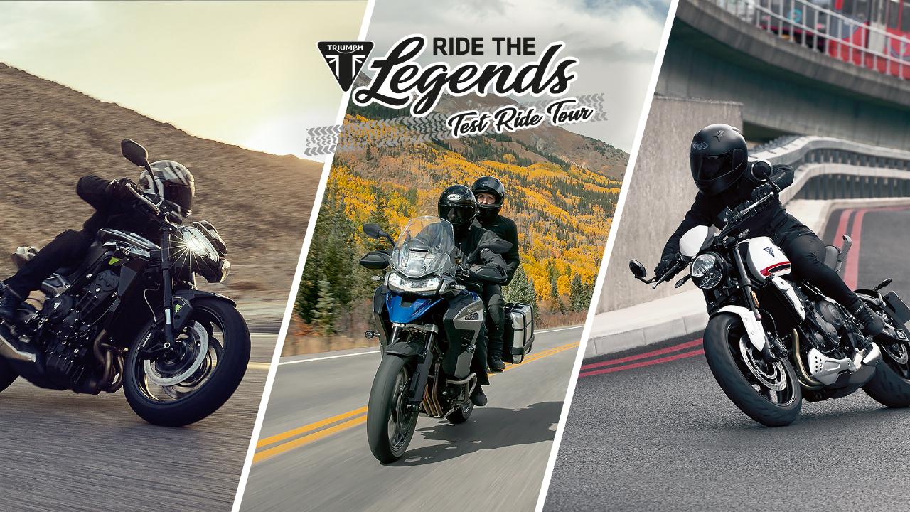 Vier Monate lang geht Triumph auf Testride-Tour durch Deutschland und Österreich. Unter dem Motto „Ride the Legends“ können sich Interessierte zwischen dem 15. April und 19. August an 20 Wochenend-Terminen zu einer Probefahrt anmelden. Es werden jeweils zehn verschiedene Modelle bereitstehen. Benötigt werden neben einer Anmeldung der Klasse-A-Führerschein sowie eigene Schutzkleidung. Halt macht die Testtour bei Händlern, Motorradtreffs und einigen Louis-Filialen. Anmeldungen für eine Probefahrt mit dem Wunschbike werden auf www.ride-the-legends.de entgegengenommen. Weitere Termine sind nicht ausgeschlossen. (aum)