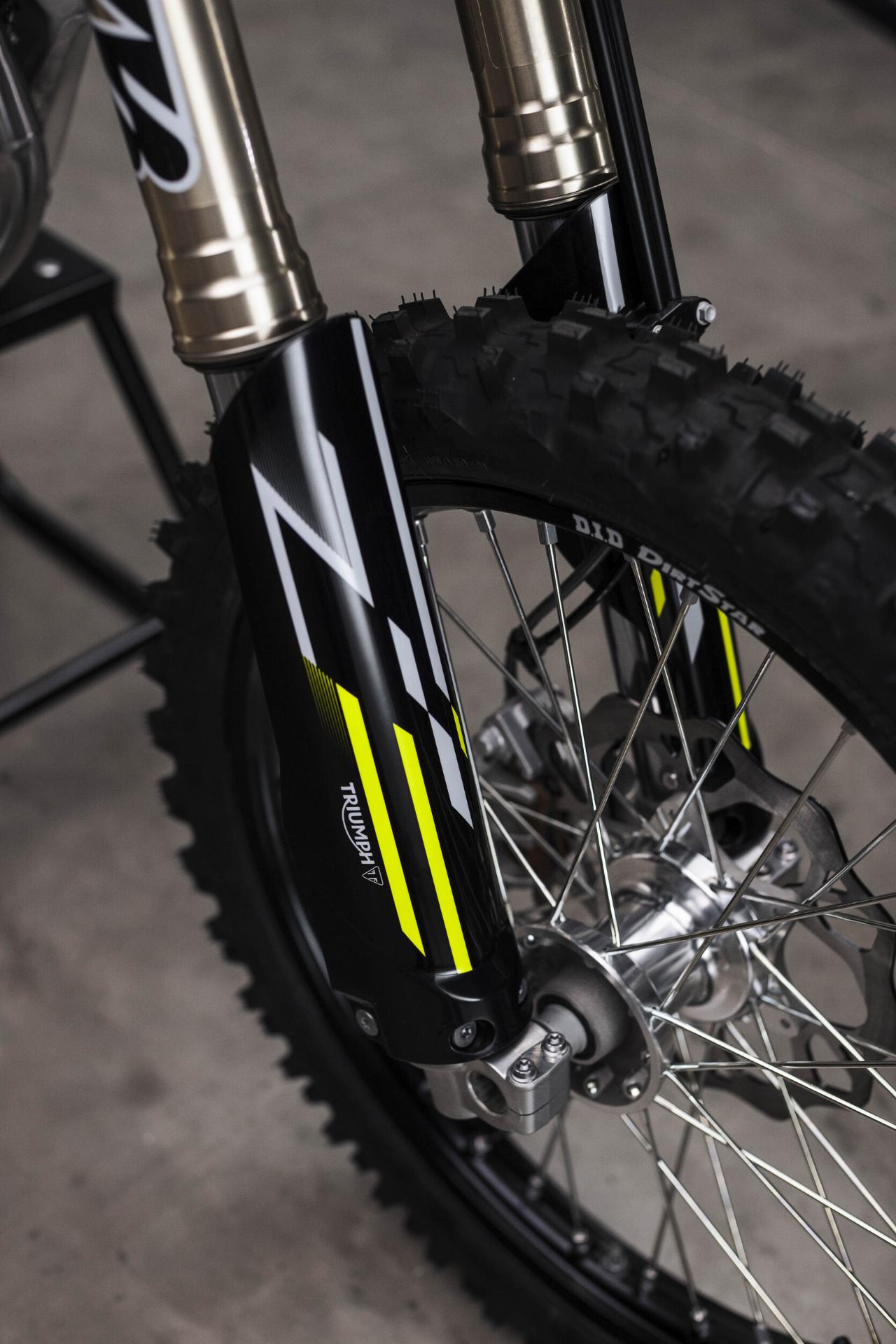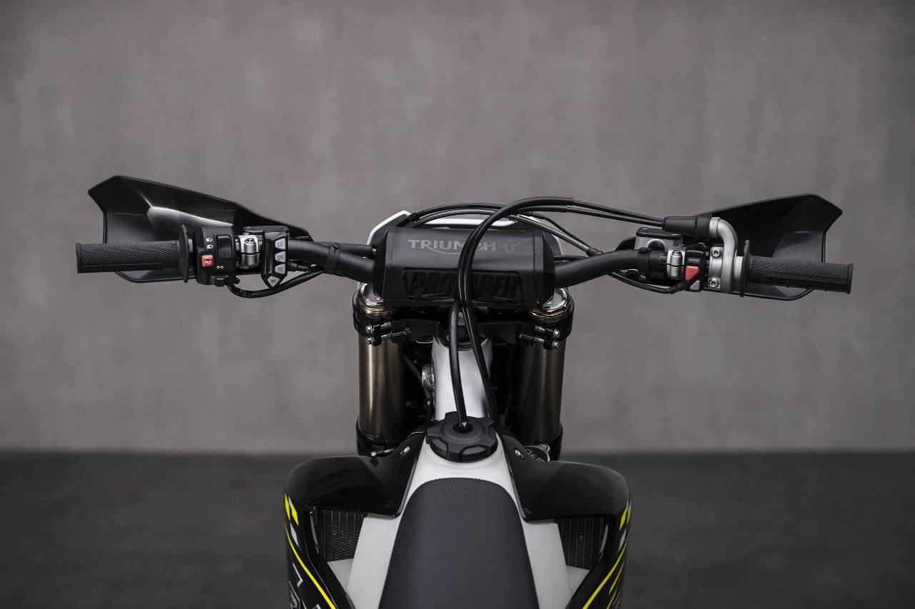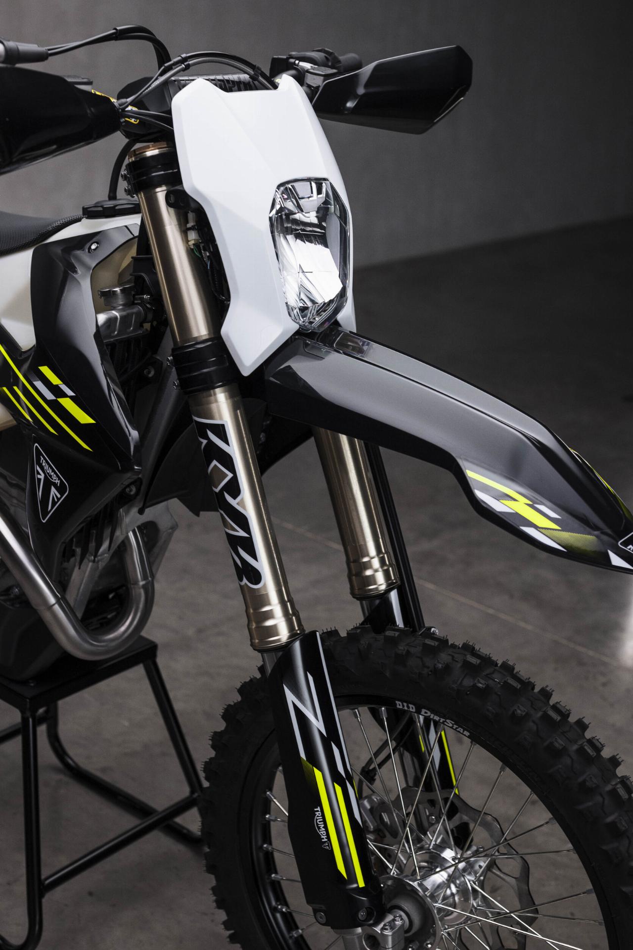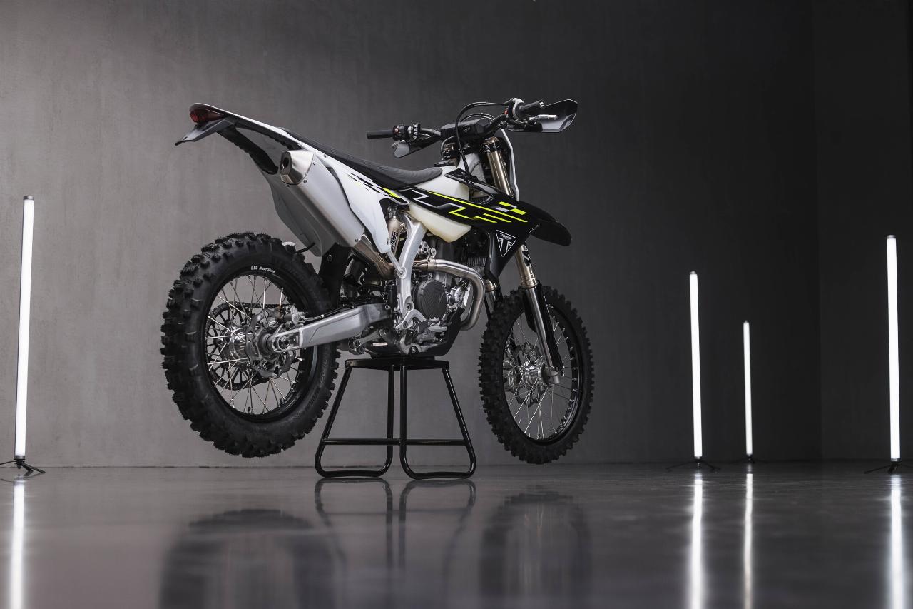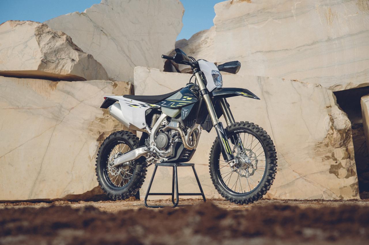 Triumph erweitert sein Geländesportangebot um die neuen Enduromodelle TF 450-E und TF 250-E. Entwickelt wurden sie in enger Zusammenarbeit mit den mehrmaligen Weltmeistern Iván Cervantes und Paul Edmondson. Der Motor, der eine höhere Schwungmasse als in den Motocrossmodellen entwickelt, steckt in einem sehr leichten Aluminium-Chassis auf Basis eines neuen Zentralrohr-Rahmens mit zwei Unterzügen. Während für die TF 450-E noch keine Leistungsangaben gemacht werden, darf die 250er mit 42 PS (31 kW) und 28 Newtonmetern Drehmoment als leistungsstärkste Vertreterin ihrer Klasse gelten. Der Einzylinder dreht bis 12.800 Umdrehungen in der Minute.
