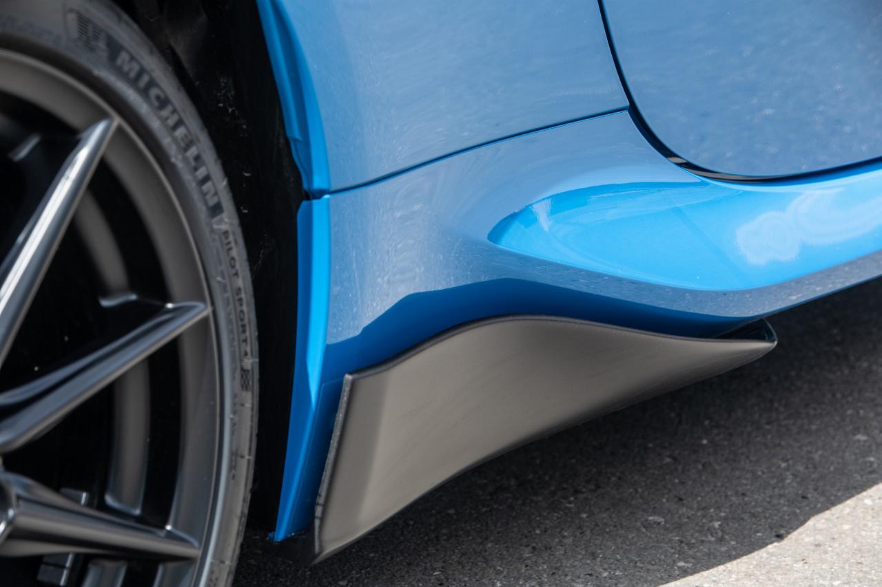 Für eine schärfere Optik hat J-Sport beispielsweise ein komplettes Aerodynamikprogramm für den GR86 aufgelegt. Das Paket aus Frontspoiler-Ecken, Heckspoiler, Seitenschweller- und Heckschürzen-Aufsätzen fügt sich nahtlos in die sportliche Linienführung des Serienfahrzeugs ein und optimiert die Aerodynamik. Das Paket erzeugt 45 Kilogramm Abtrieb an der Hinterachse und zehn Kilogramm an der Vorderachse und verbessert damit das Fahrverhalten besonders bei hohen Geschwindigkeiten erheblich.