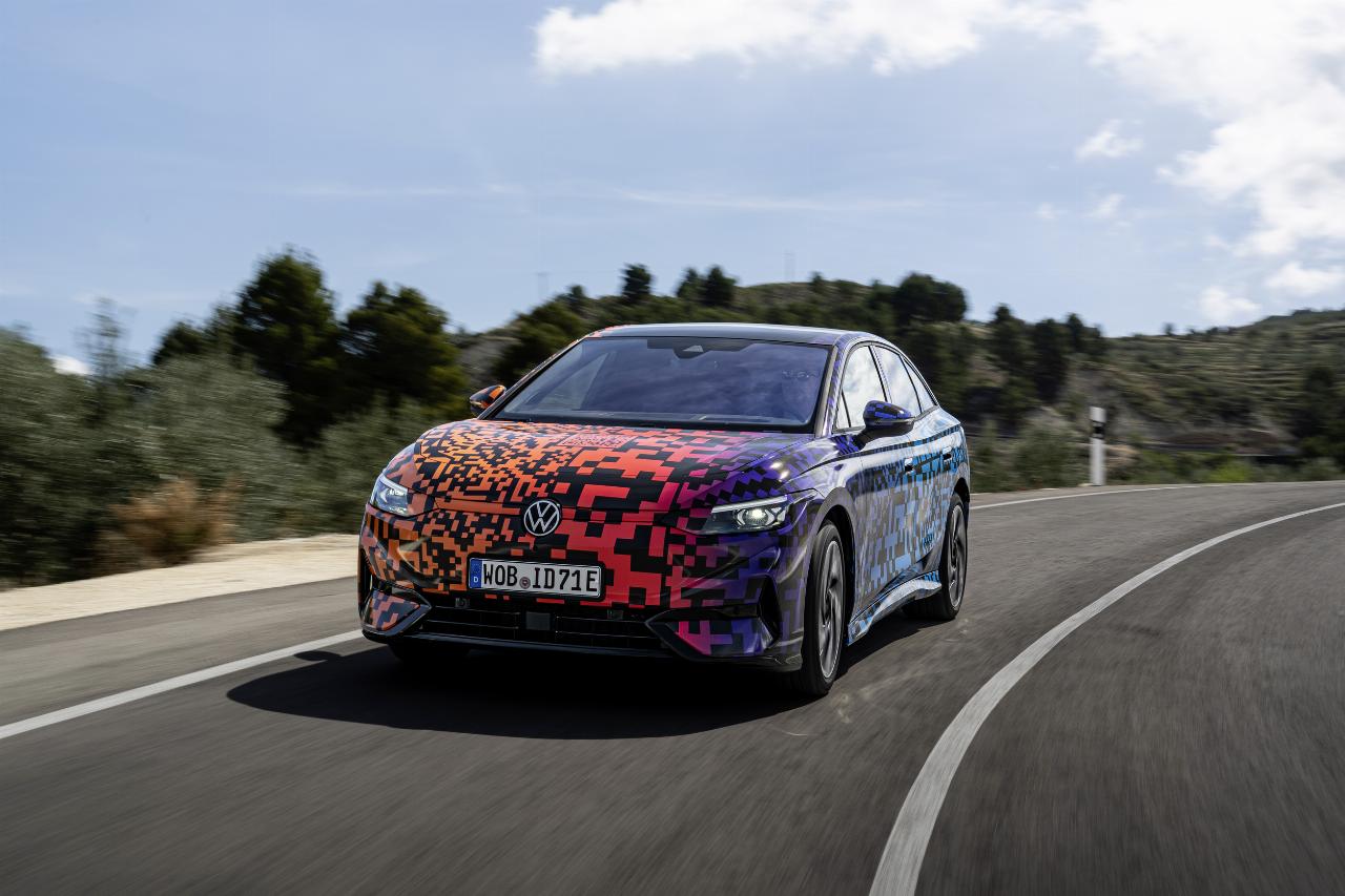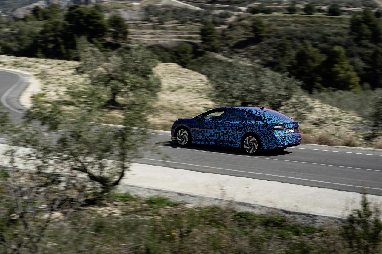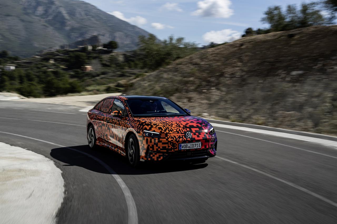 Der ID 7 wurde als Reiselimousine entwickelt und besitzt die weiterentwickelte adaptive Fahrwerksregelung DCC. Der Mensch hinter dem Lenkrad kann die Fahrprofile „Eco“, „Comfort“ und „Sport“ oder einen Individualmodus wählen. Bei einer ersten kurzen Ausfahrt mit dem Prototyp in Andalusien zeigte VWs Siebener seine Komfort-Eigenschaften. Vor allem die Einstellung „Comfort“ hält, was sie verspricht. Gleichzeitig kann die Limousine auch durchaus agil agieren, wobei der Fahrdynamikmanager die Stabilität ins Spiel bringt. Gleichzeitig ist der ID 7 trotz seiner Abmessungen erstaunlich wendig.
