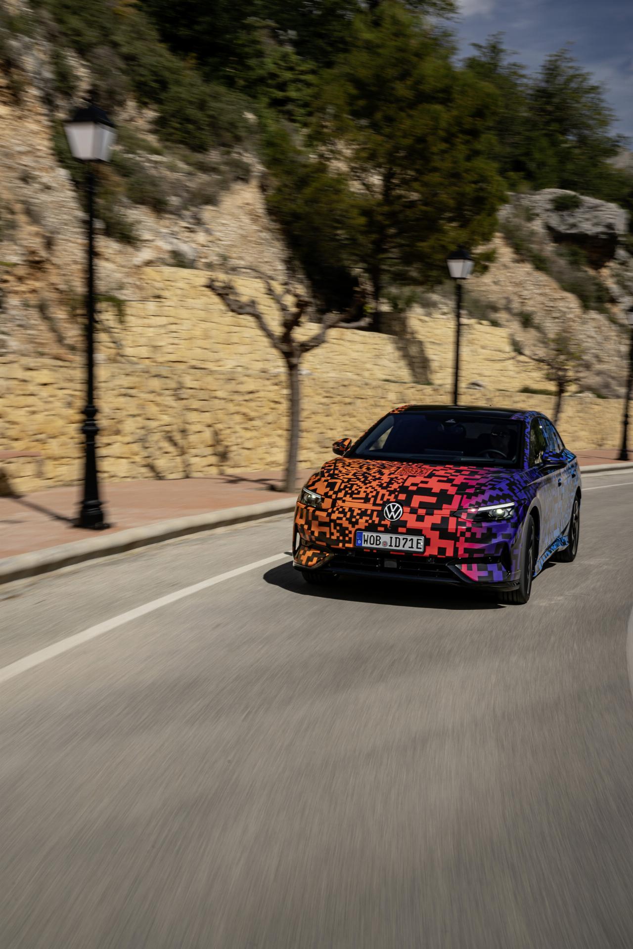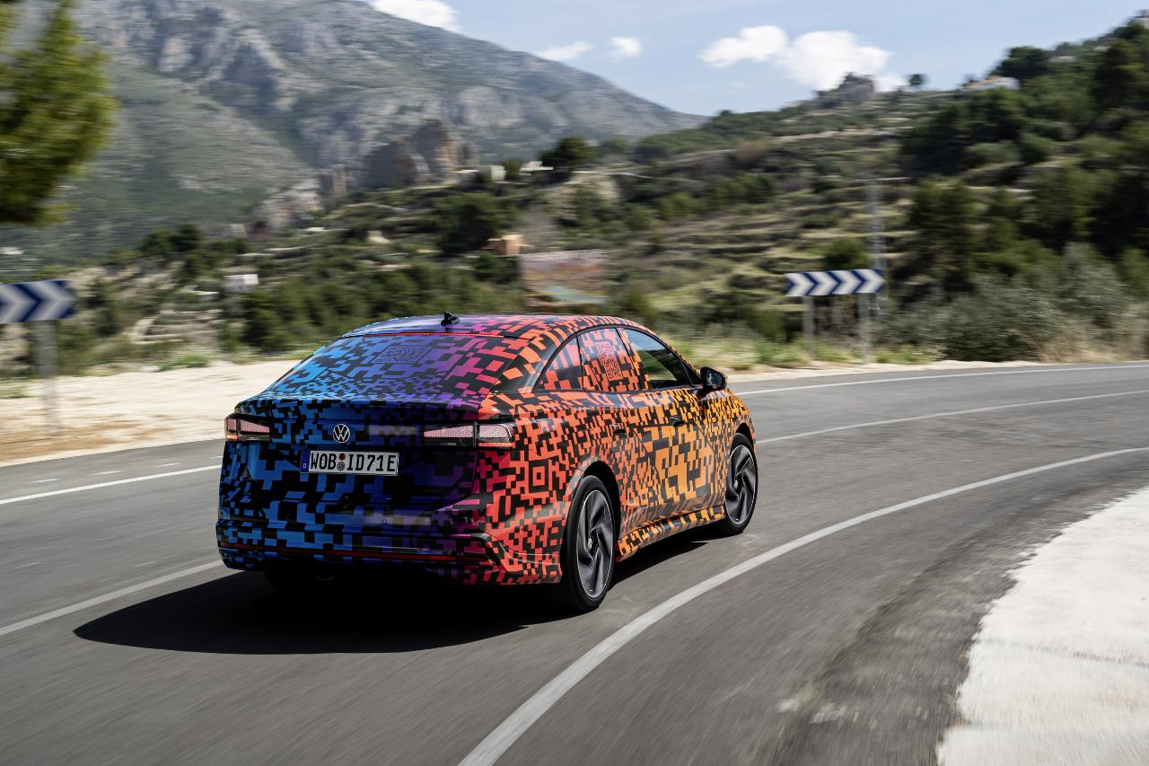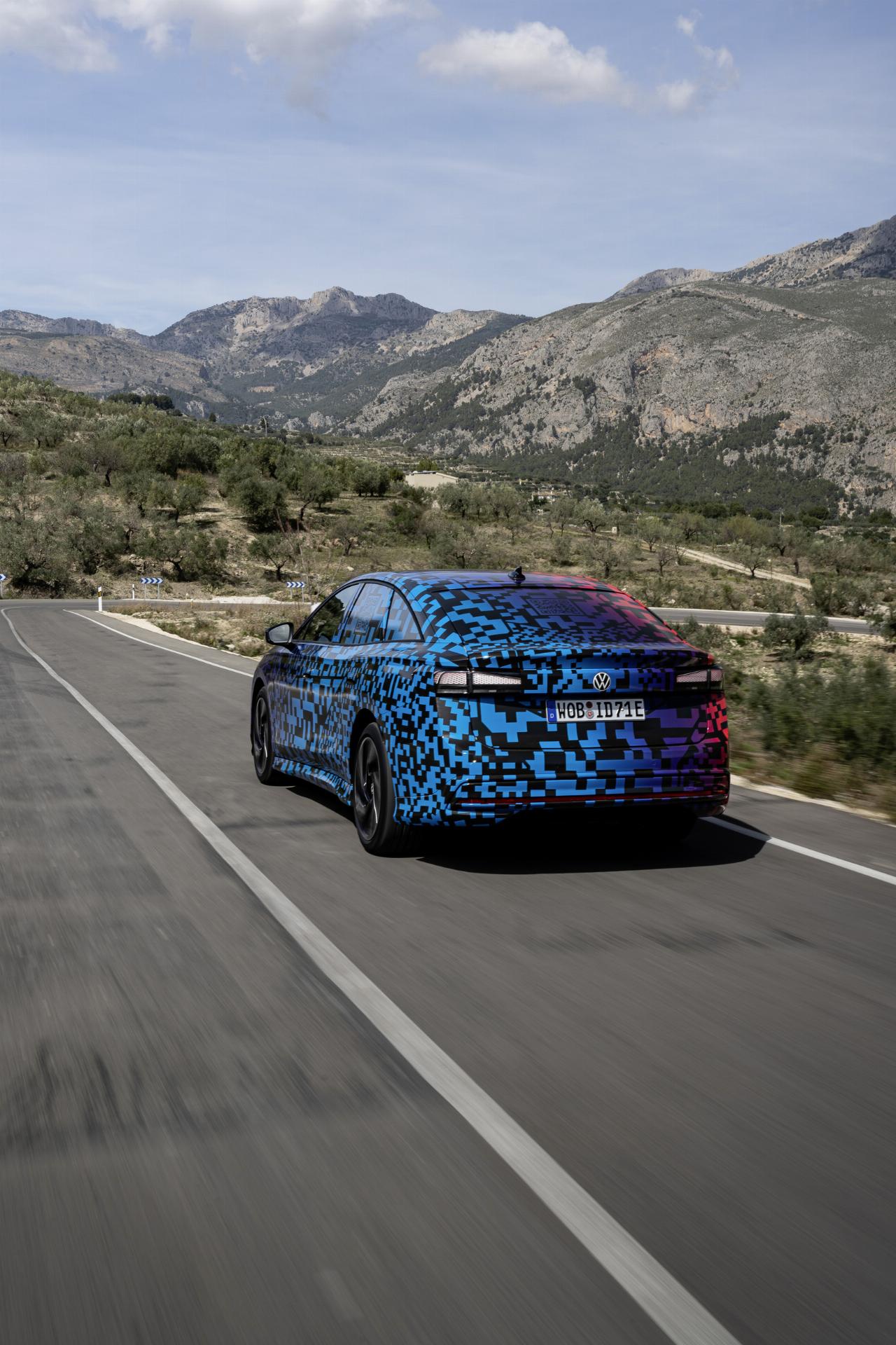 Der ID 7 wurde als Reiselimousine entwickelt und besitzt die weiterentwickelte adaptive Fahrwerksregelung DCC. Der Mensch hinter dem Lenkrad kann die Fahrprofile „Eco“, „Comfort“ und „Sport“ oder einen Individualmodus wählen. Bei einer ersten kurzen Ausfahrt mit dem Prototyp in Andalusien zeigte VWs Siebener seine Komfort-Eigenschaften. Vor allem die Einstellung „Comfort“ hält, was sie verspricht. Gleichzeitig kann die Limousine auch durchaus agil agieren, wobei der Fahrdynamikmanager die Stabilität ins Spiel bringt. Gleichzeitig ist der ID 7 trotz seiner Abmessungen erstaunlich wendig.
