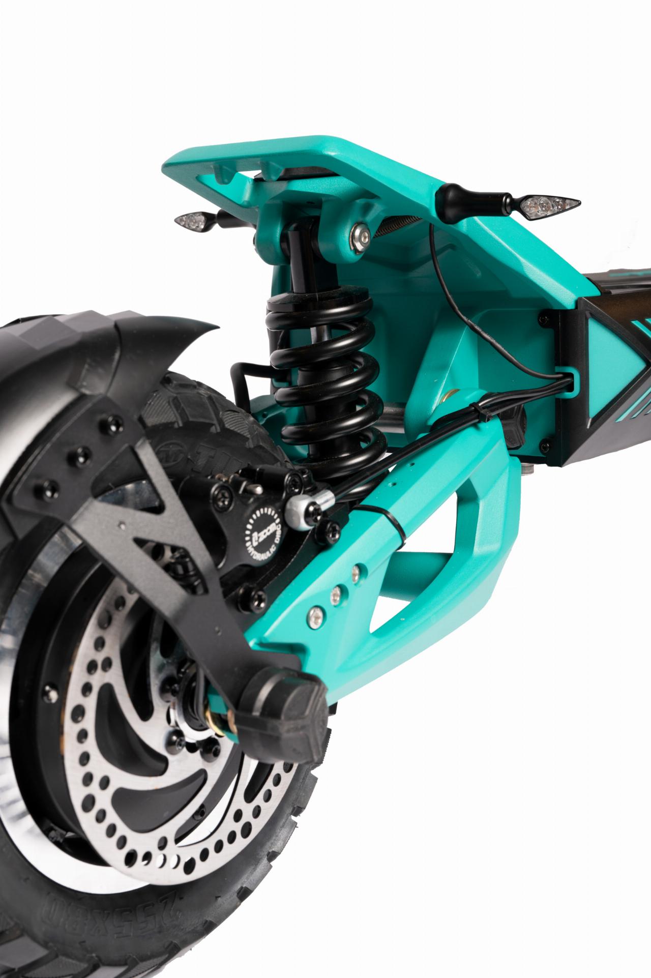 Das Krefelder Unternehmen IO Hawk bringt in Kürze mit dem Legacy einen neuen E-Kickscooter auf den Mark. Er soll über eine ungewöhnlich hohe Reichweite von 120 Kilometern verfügen. Wie schon das ausverkaufte Vorgängermodell Legend sticht auch der Legacy durch die grobstollige Luftbereifung und die gefederte Hinterachse hervor. Größte Besonderheit des Offroad-E-Scooters: Das 10-Zoll-Vorderrad wird ebenfalls in einer gefederten Schwinge geführt. Zudem verfügt der IO Hawk Legacy über ein System, dass das Blockieren der Räder beim Bremsen verhindern soll. Eine Scheibenbremse auch hinten, Blinker, Hupe und Bremslicht sorgen ebenfalls für größtmögliche Sicherheit im Straßenverkehr.
