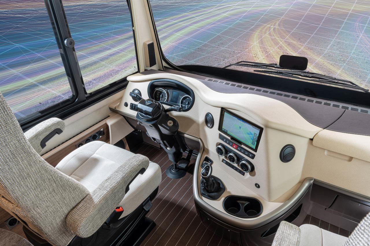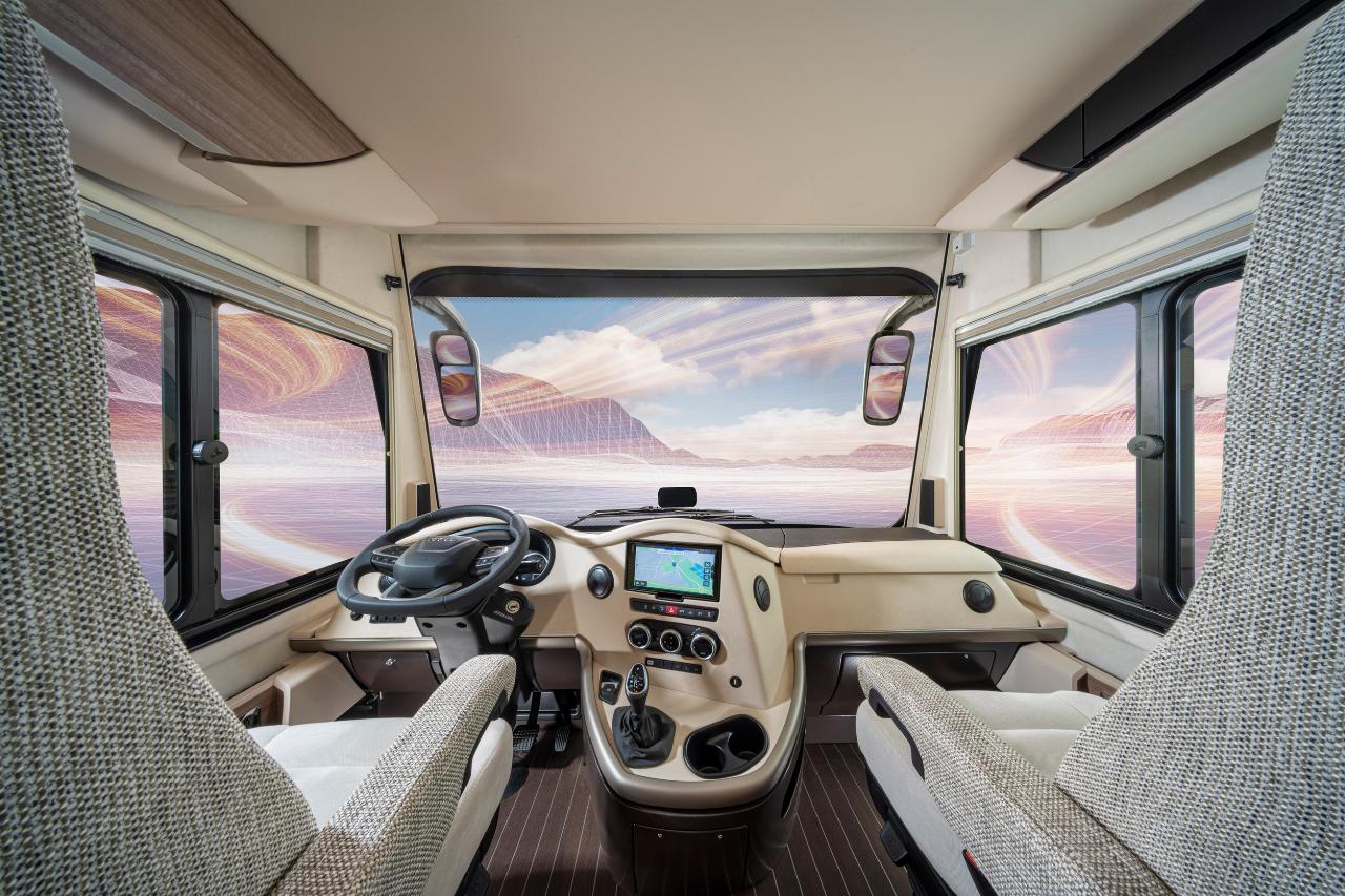 Der Fahrerplatz hat Kuschelqualitäten. Der Pilotensitz ist dreh- sowie in der Höhe und Neigung verstellbar, gleiches gilt für den Sessel des Co-Piloten. Für mehr Platz kann das Lenkrad abgenommen werden. Große Busspiegel und Busscheibenwischer verbessern die Sichtverhältnisse, das serienmäßige LED-Tagfahrlicht kann auf Wunsch durch Bi-LED Hauptscheinwerfer und Nebelscheinwerfer mit statischem Kurvenlicht ergänzt werden. Der Iveco Daily hat einen Notbremsassistenten serienmäßig. Das Radarsystem erkennt Hindernisse und greift im Zweifelsfall ein, um schwere Unfälle zu vermeiden.