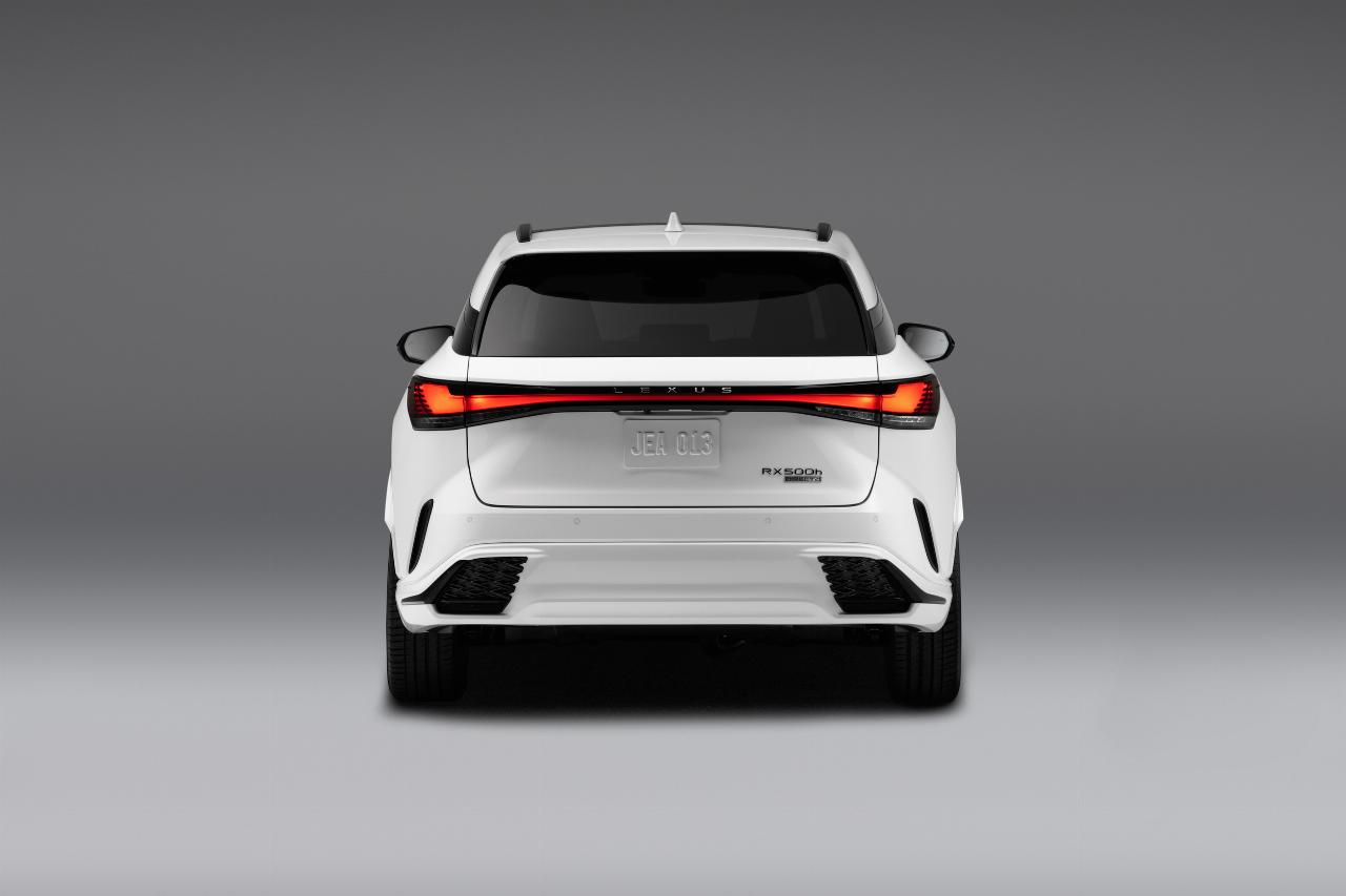 Die Plug-in-Hybridversion RX 450h+ nutzt ebenfalls den 2,5-Liter-Benziner sowie eine 18,1 kWh starke Batterie und kommt auf eine Leistung von 306 PS (225 kW), was sich in eine Beschleunigung rund sieben Sekunden bis Tempo 100 km/h übersetzt. Der Verbrauch wird mit wenig realistischen 1,1 bis 1,2 Litern angegeben. Als elektrische Reichweite werden 65 Kilometer angestrebt. Die stärkste Version kommt als RX 500h zu den Händlern und leistet 371 PS (266 kW), die über eine Sechs-Gang-Automatik an die Antriebsräder übertragen werden. Nach sechs Sekunden sind die 100 km/h erreicht, und der Verbrauch wird mit 8,2 bis 8,5 Litern angegeben.
