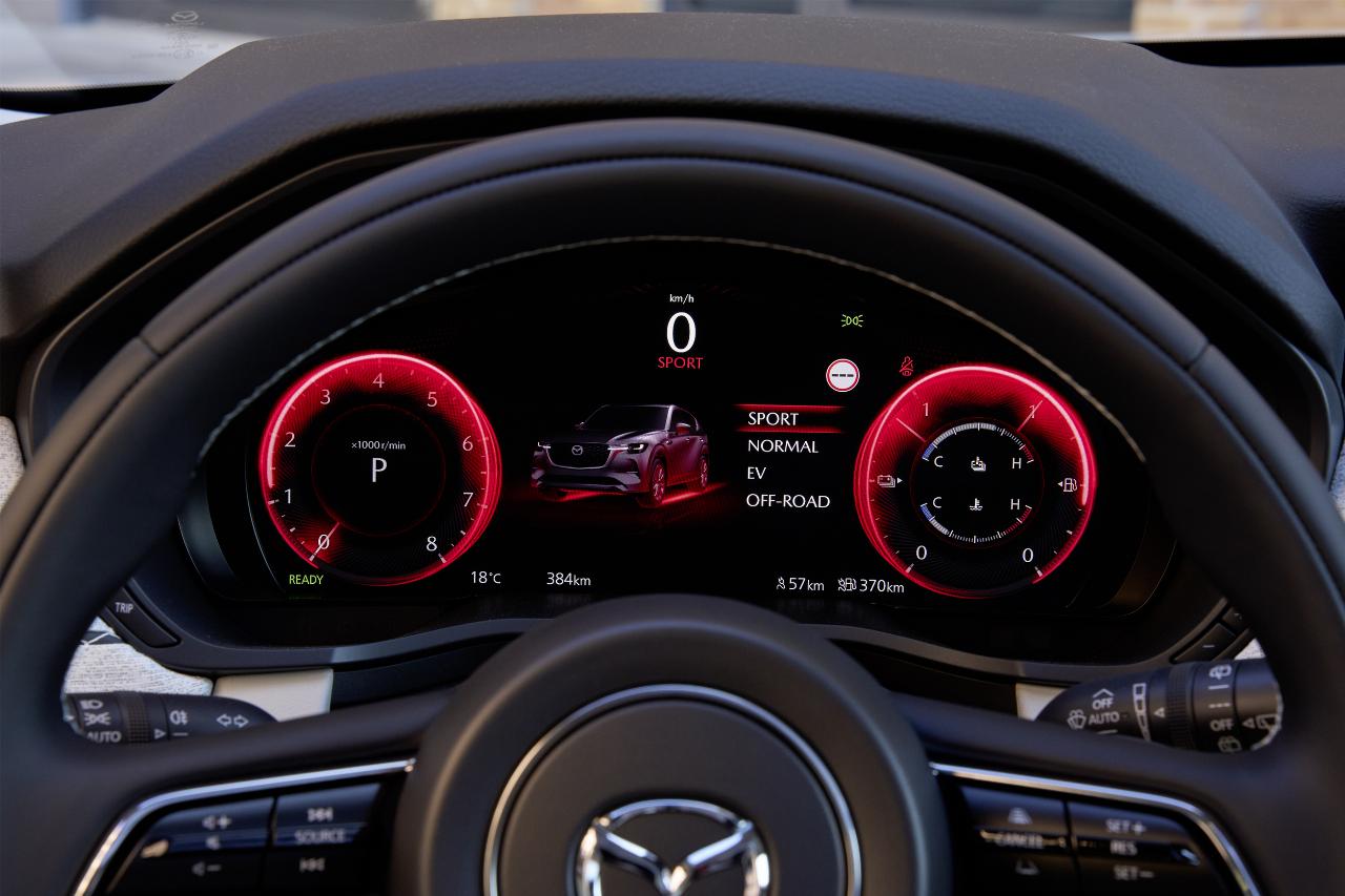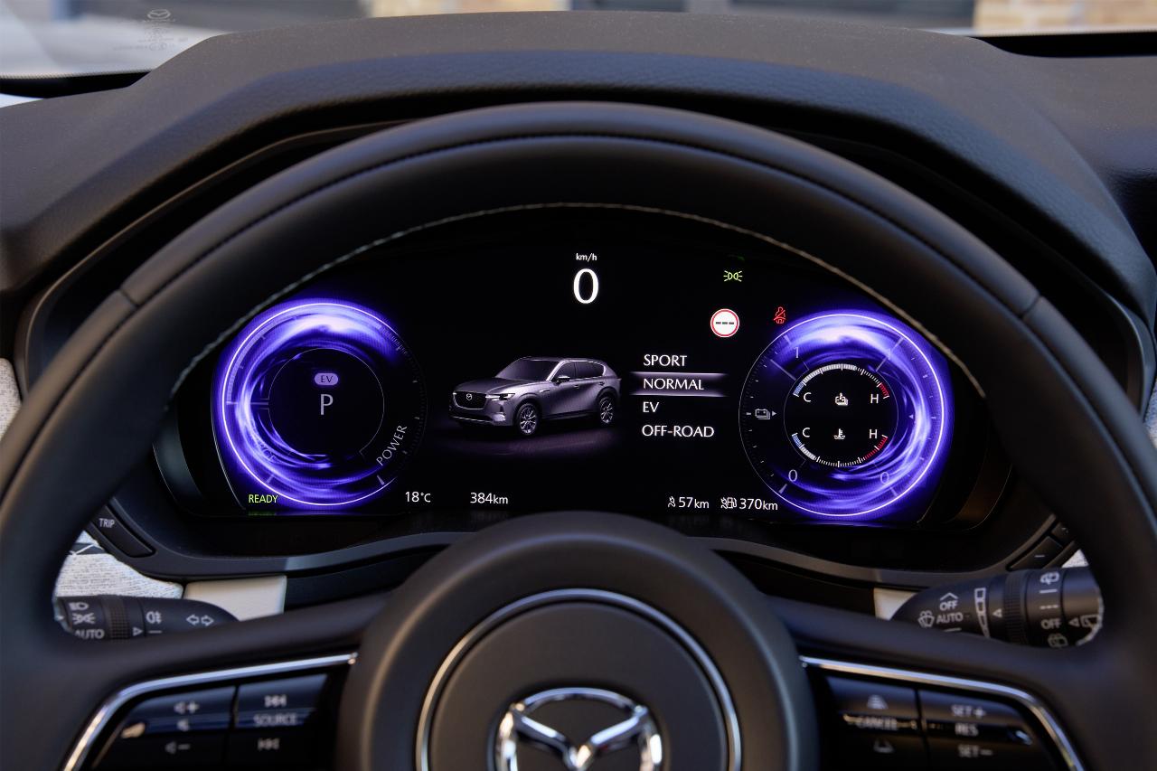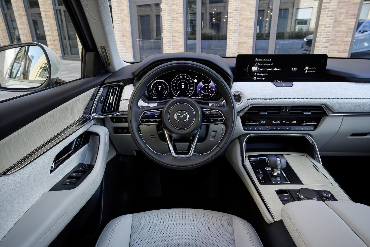 Das funktioniert auffallend gut. Trotz des üppigen Gewichts liegt der Wagen gut in der Hand und lässt sich auch in schnellen Kurvenpassagen leichtfüßig dirigieren. Für optimale Traktion, Leistung, Handling und Sicherheit in unterschiedlichen Fahrbedingungen finden sich im Fahrmodusprogramm Mi-Drive (Mazda Intelligent Drive Select) die fünf Modi Normal, Sport, Off-Road, Towing (Zugbetrieb) und EV.