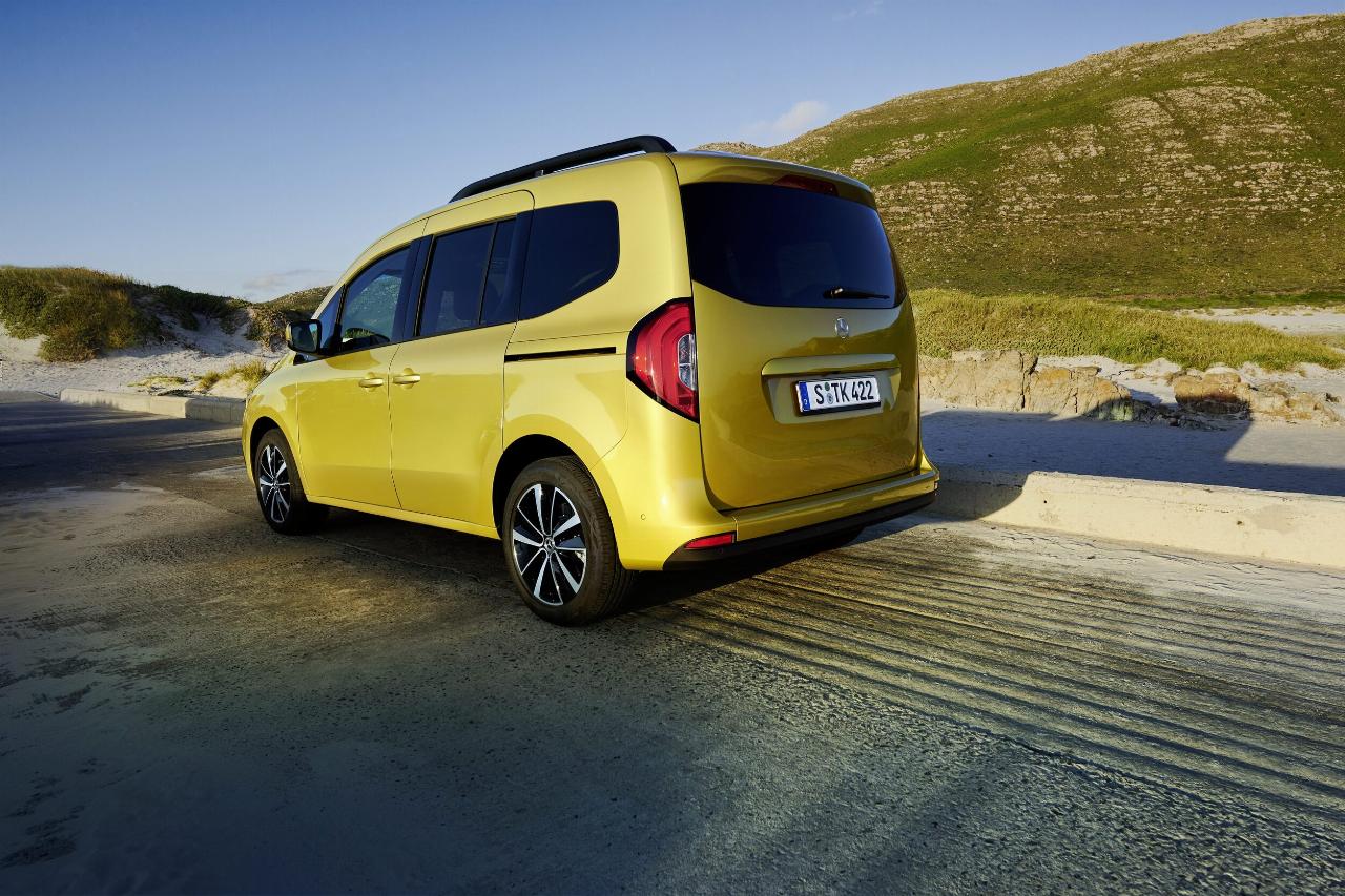 Zwei Diesel und zwei Benziner in insgesamt vier Leistungsstufen stehen für die T-Klasse zum Marktstart bereit. Die beiden Selbstzünder mit vier Zylindern und 1,5 Litern Hubraum bringen es auf 95 PS (70 kW) und 115 PS (85 kW), sie liefern 260 und 270 Newtonmeter Drehmomentspitze. Die Benziner haben 1,3 Liter Hubraum und leisten wahlweise 102 PS (75 kW) oder 131 PS (96 kW). Ihr maximales Drehmoment erreichen sie bei 200 und 240 Nm. Die Verbrauchswerte laut WLTP gibt Mercedes mit 5,3 bis 5,5 Liter Diesel und 6,6 bis 6,7 Litern Benzin auf 100 Kilometer an. Kombiniert werden die Motoren mit einem Sechs-Gang-Schaltgetriebe, ein Doppelkupplungsgetriebe mit sieben Gängen ist auf Wunsch für die Diesel und den stärkeren Benziner im Angebot. Bis zu 1,5 Tonnen schwere Anhänger kann die T-Klasse ins Schlepp nehmen, dann kann auch die spurstabilisierende Funktion Trailer-Assist in der Optionsliste angekreuzt werden.