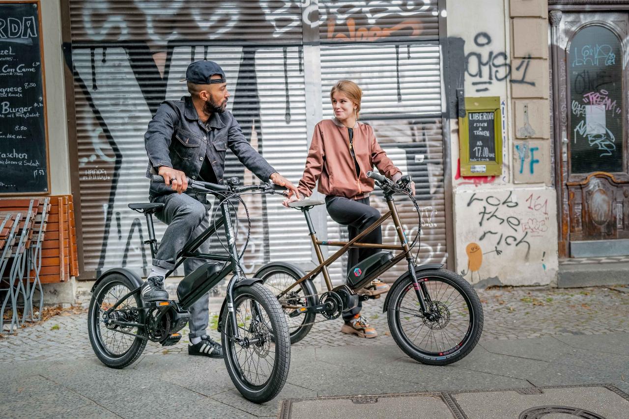 Nein, es nicht ganz ein BMX-Bike, aber zumindest fast. UTY (für Utility) nennt Cooper Bikes aus England seine neue Pedelec-Baureihe, die mit 20-Zoll-Rädern und One-Size-Rahmen für Körpergrößen von 1,40 bis 1,90 Meter passen soll. Auffälliges Designmerkmal sind die beiden sich kreuzenden Oberrohre. Als Antrieb dient ein Shimano-Motor mit 500-Watt-Akku und 40 bzw. 60 Newtonmetern Drehmoment. Wahlweise gibt es Sieben- oder Acht-Gang-Naben- sowie Neun-Gang-Kettenschaltung. Die Preise bewegen sich zwischen 2599 und 2999 Euro. Als Zubehör wird ein Frontgepäckträger angeboten. (aum)