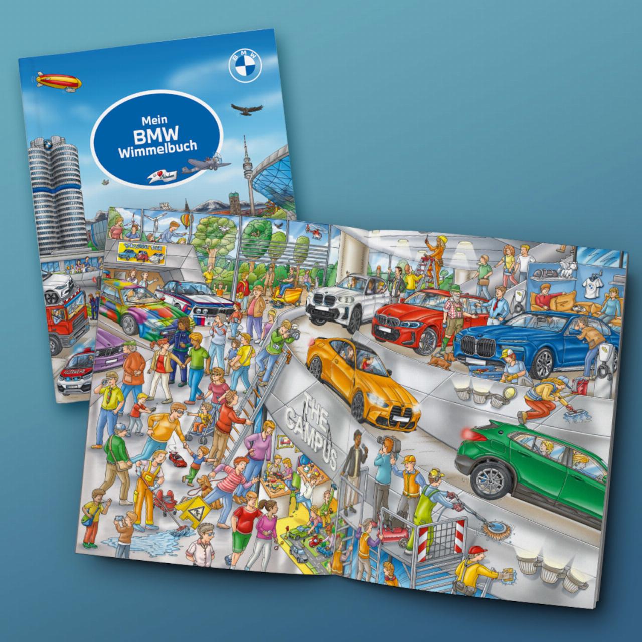 BMW denkt an die Kunden der Zukunft – und bringt ein hübsch gestaltetes Wimmelbuch, das auf 14 Seiten die Reise der fiktiven Familie Hintermaier in die Welt von BMW wiedergibt. Das Buch ist auf dem neuesten Stand, der neue 7er ist bereits berücksichtigt. Doch es bietet auch einen Ausflug in die Historie, zeigt zum Beispiel den M1 Procar und den 3.0 CSL. Das Buch kostet 12,95 Euro. (Sm)