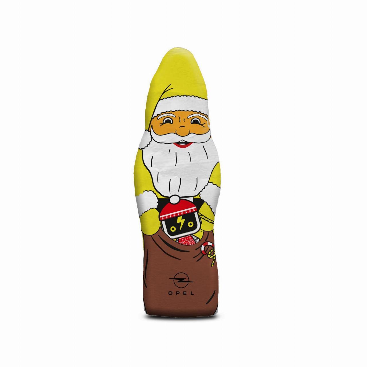 Der Opel-Monatskalender im DIN-A2-Format begleitet für 25 Euro durch das ganze Jahr, während der Adventskalender für 8,50 Euro die Wartezeit bis Weihnachten mit Schokolade verkürzt. Für sechs Euro gibt es einen Schokoladen-Weihnachtsmann im gelben Opel-Dress und für 19,50 Euro kommen vier Weihnachtskugeln mit schwarzem Opel-Aufdruck und Opel-Blitz an den Baum.