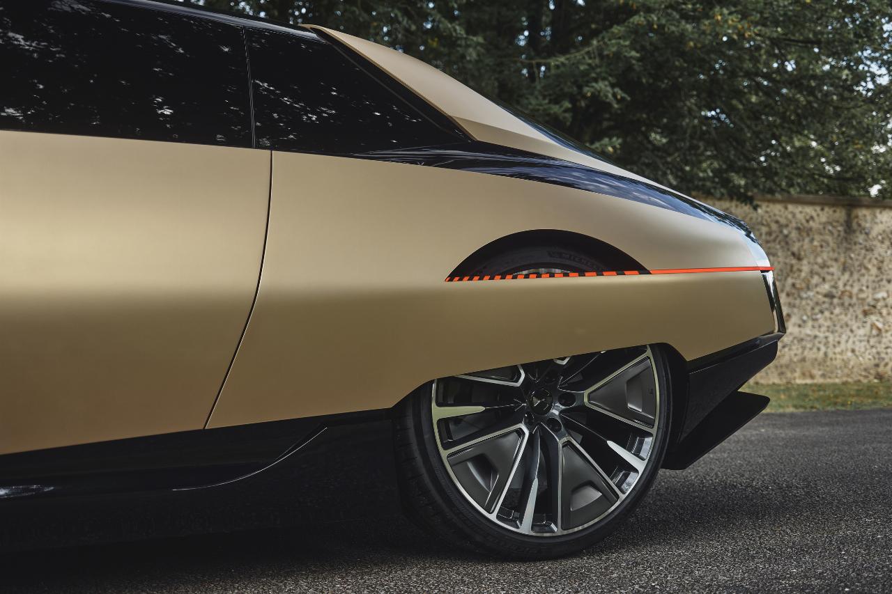 Während der SM Tribute die ikonischen Proportionen des SM mit einer Länge von 4,94 Metern (+3 Zentimeter) und einer Höhe von 1,34 Metern (+ 2 Zentimeter) annähernd beibehält, legt die Designstudie in der Breite deutlich um 14 Zentimeter auf 1,98 Meter zu. Dieser Kniff verleiht dem SM Tribute eine muskulöse Präsenz. Die reduzierte Bodenfreiheit von 12,0 Zentimetern (-3,5 Zentimeter) optimiert die aerodynamische Effizienz. Mit dem demselben Ziel rollt der SM Tribute auf 22-Zoll-Rädern, die mit aerodynamischen Einsätzen versehen sind.