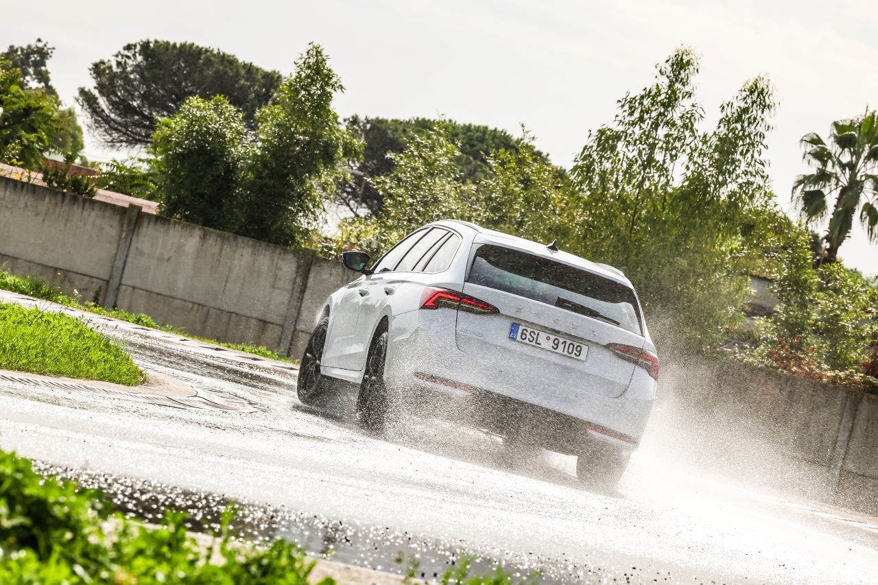 Der Michelin Pilot Sport 5 sich im Trockenen den dritten Rang. Es folgt der Pirelli P Zero, dessen Rollwiderstand nach der letzten Überarbeitung besser geworden ist. Der Bridgestone hingegen markiert seinerseits den kürzesten Bremsweg und gibt sich betont sportlich. Diese Charakteristik schränkt jedoch den Komfort ein, in Sachen Energieeffizienz trägt er sogar die rote Laterne. Der Toyo liegt nach Punkten im Trockenen gleichauf und begeistert mit seiner Agilität, die ihm die flotteste Rundenzeit sichert. Falken und Vredestein schlagen sich wacker, setzen aber kaum Akzente.