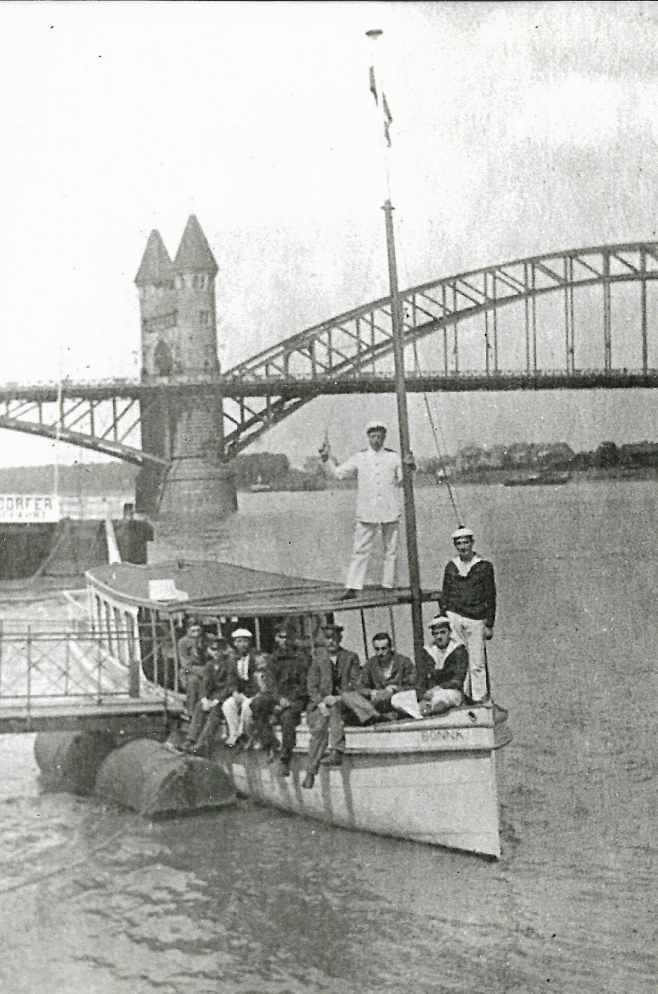 Von klein an begleitete mich nämlich ein Foto meines Großvaters aus dem Jahr 1912, das ihn mit stolz geschwellter Brust am Steuer eines Autos der preußischen Rheinarmee zeigte. Großvater, der noch vor meiner Geburt starb, war es auch, der nach dem Ersten Weltkrieg als einer der ersten Binnenschiffer auf dem Rhein zwischen Bonn und Koblenz ein Motorboot mit schnelllaufendem Dieselmotor betrieb und damit zunächst Güter, dann Passagiere beförderte. Angeblich schickte Jean Richarz – im Rheinischen vergewaltigte man das „Jean“ zu „Schäng“ – vor Antritt einer jeden Fahrt die Besatzung in die Kirche, um Gottes Beistand für die junge Technik zu erbitten. Das setzte sich auch nach 1929 fort, als Großvater zu den Gründern der Bonner Personenschiffahrt eG gehörte, die demnächst ihren 100. Geburtstag feiern wird. Ihm habe ich wohl meine Begeisterung für alles Motorisierte zu verdanken.