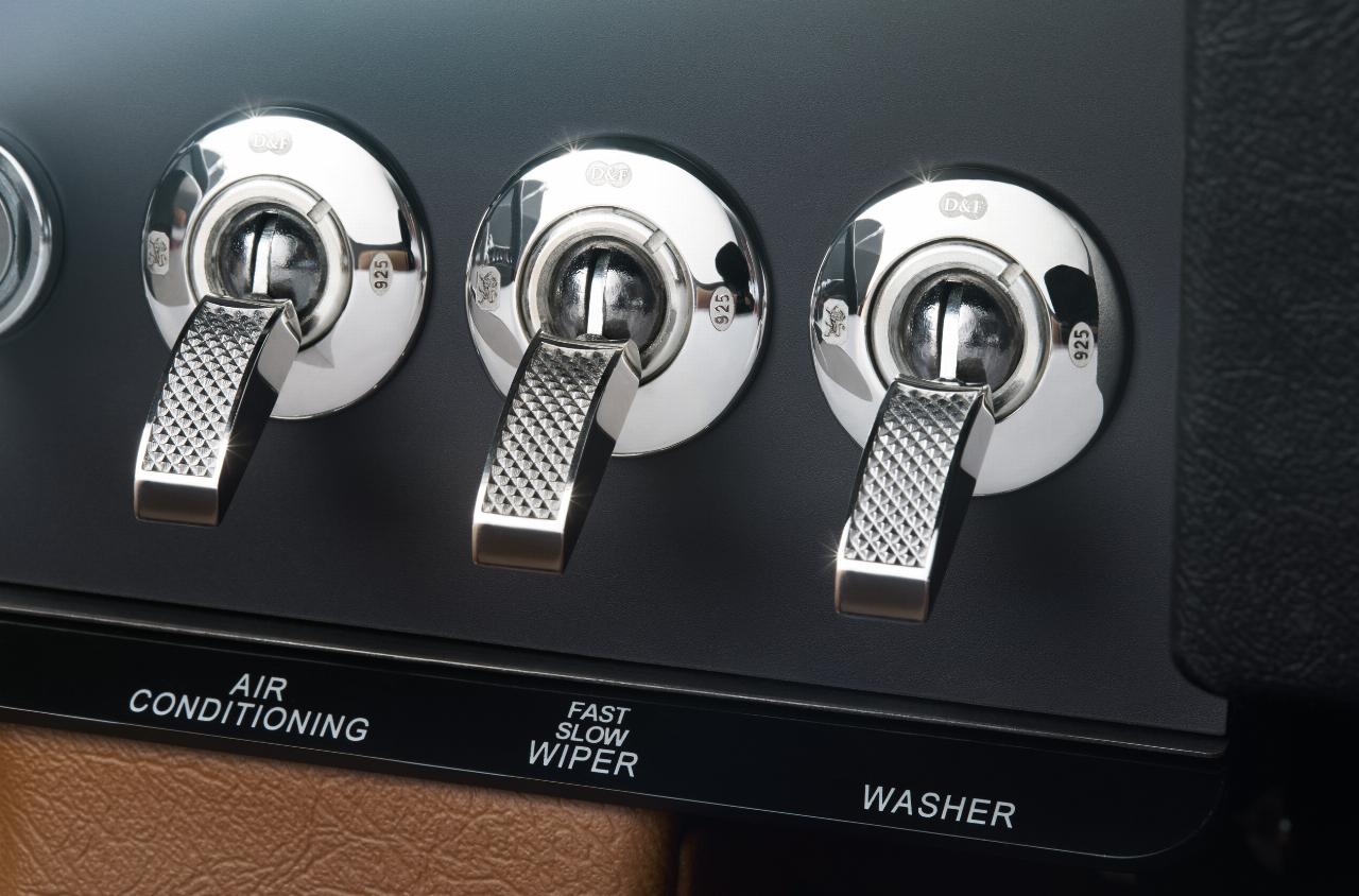 Details von Deakin & Francis, dem ältesten Juwelier Englands, verzieren die Innen‑ und Außenausstattung beider Modelle. So ist das Frontemblem aus Silber mit guillochiertem Perlmutt und einem Growler‑Symbol aus 18‑karätigem Gold gefertigt, während die Markenembleme am Heck aus emailliertem Sterlingsilber bestehen. Im Innenraum ist der Hupentaster am Lenkrad in Silber mit einem Jaguar-Emblem aus 18 Karat und einer Perlmutt‑Intarsie ausgeführt, während der Schaltknauf aus Sterlingsilber mit Perlmutt und Gold besteht. Auch die Schalter am Armaturenbrett stammen aus Juwelier-Hand. Die von Deakin & Francis entwickelten technischen Verfahren hat es im Automobilbau noch nie gegeben.