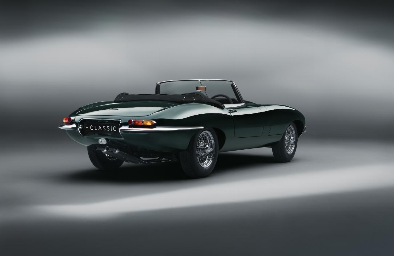 Es handelt sich dei den beiden Jaguar Classic E‑Type Commemorative um Einzelanfertigungen des Carbrios. Eines ist in Signet Green lackiert, das andere in Opal Black – beides Aktualisierungen der ursprünglichen Farbgebung von 1974. Die Sitze sind aus hellbraunem Leder von Bridge of Weir. Sie wurden in der Jaguar -Classic-Werkstatt handgefertigt und genäht – mit dazu passenden schwarzen und hellbraunen Lederverkleidungen. Ebenfalls maßgefertigt sind weitere Innenraumelemente, darunter eine Mittelkonsole aus eloxiertem Aluminium mit der Gravur eines aus den Archiven stammenden originalen Bauplans der Serie I.