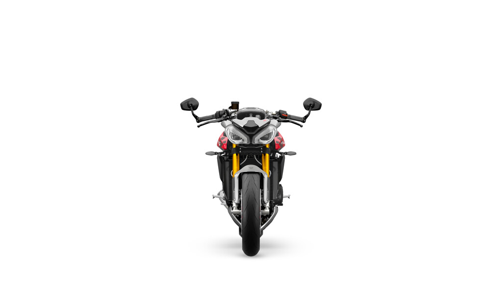 Die RX verfügt über einige besondere Details, darunter eine präzisionsgefertigte obere Gabelbrücke, ein lasergraviertes „RX“-Logo auf dem Schalldämpfer und ein spezieller Sitz mit RX-Logo. Die auffällige Lackierung in Matt Aluminium Silver wird als Hommage an die ursprüngliche Street Triple 675 RX mit einem markanten Heckrahmen in Diablo Red und passenden Rädern kombiniert.